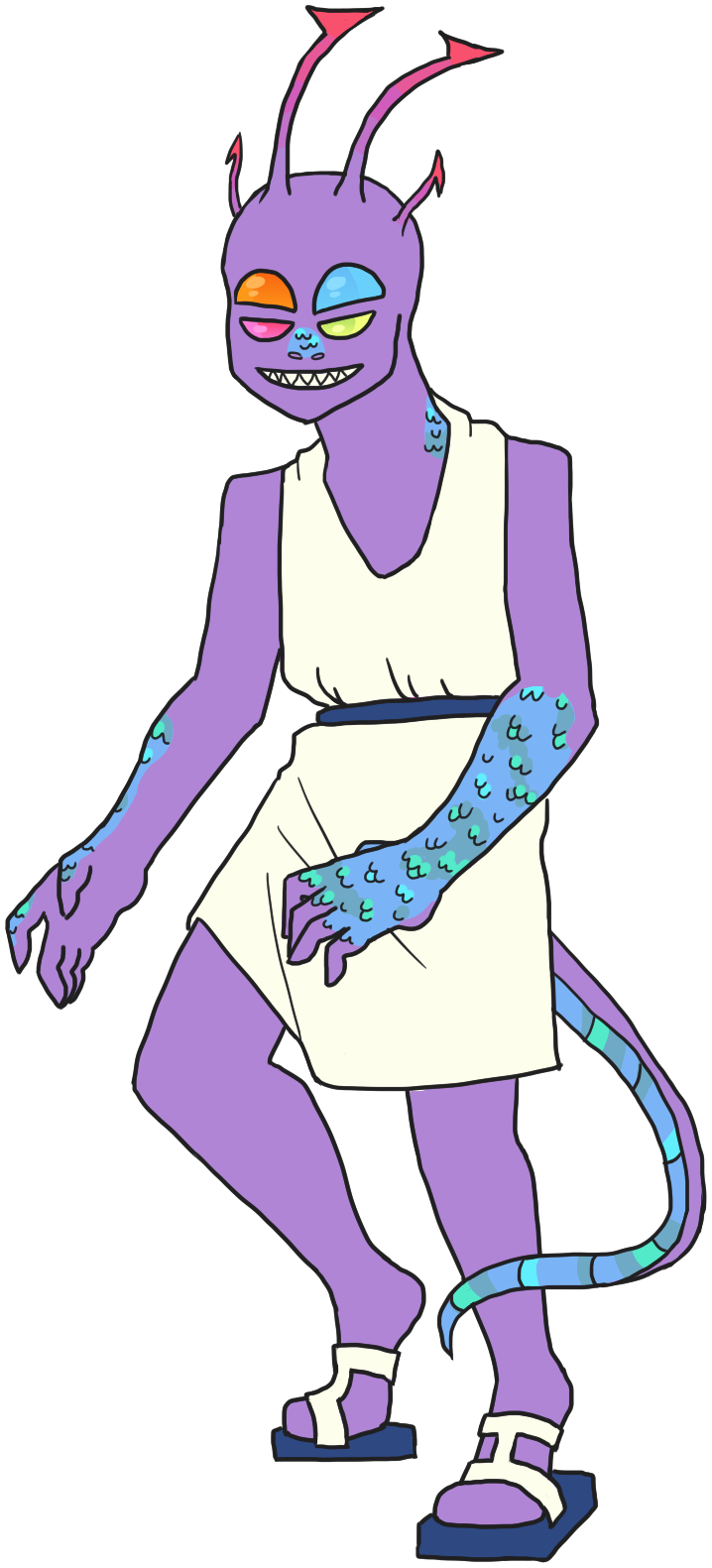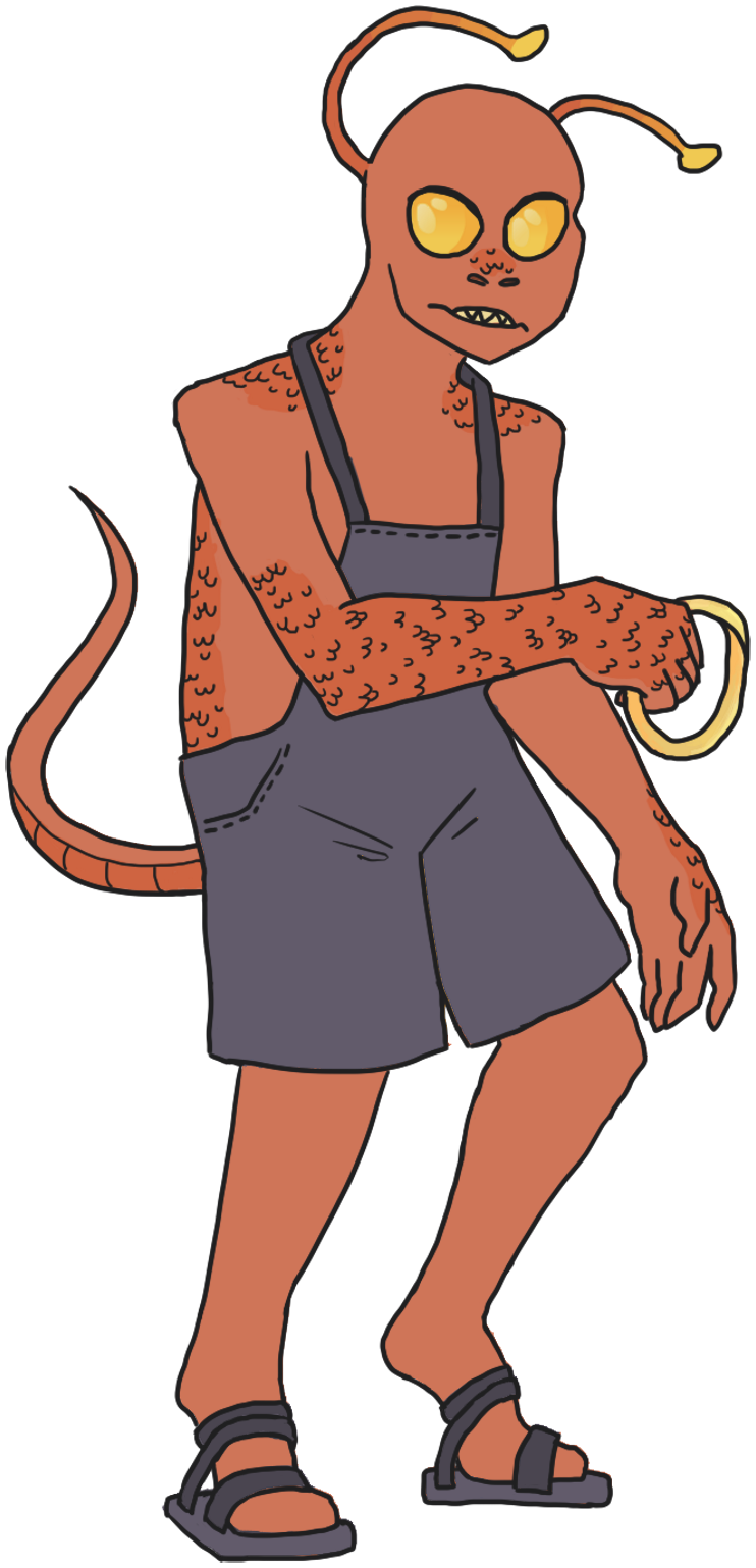 Sheridan is one of the few Lirg trokai in existence on Astroria, and one of the unfortunate ones to have been uncovered by an explorer. They have a pact with Daron that she will not reveal them to other people, and in exchange has Sheridan’s permission to scour and salvage from the decrepit labs that they’d otherwise defend by any measures. As a trokaz, they have been alive for multiple generations, and understandably want to prevent people from bringing back the technology that put them in this circumstance.